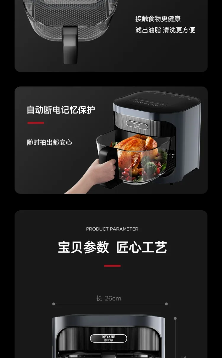 Air fryer Household glass liner Uncoated large capacity electric fryer Steam tender roast cooker air fryer oven