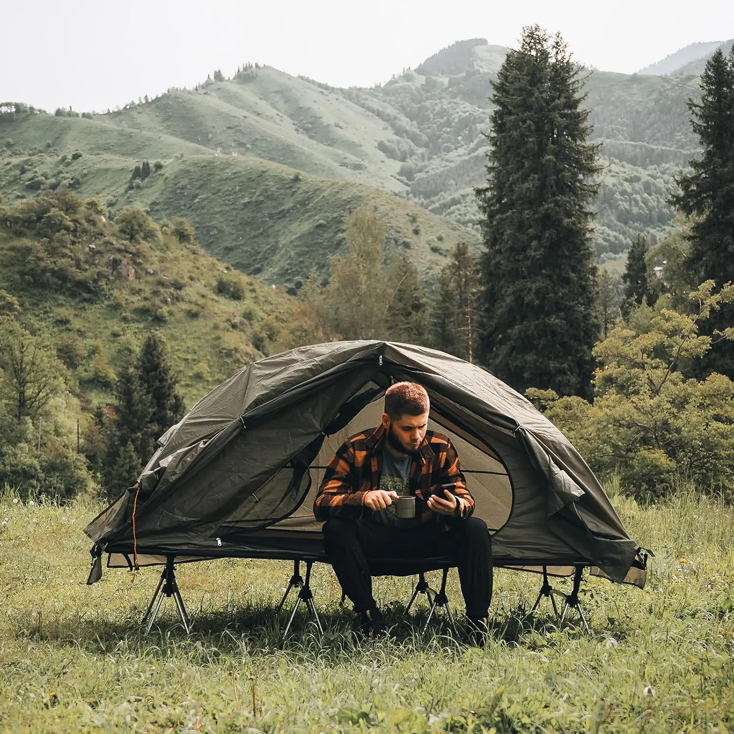 CQ Camping Cot Tent - Waterproof 1-Person Off-Ground Combo Cot Bed for Adults Portable Easy Set-up Tent