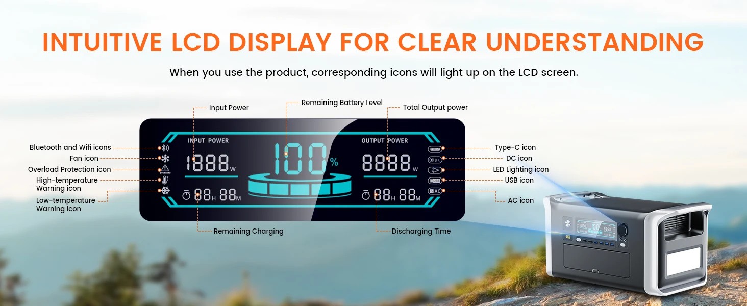 [Solar Fast Charge at Anywhere]: Solar-powered generator built-in MPPT charge controller for up to 500W solar input, fully powering the device in just 2 hours, merging technology with sustainability for Outdoor Camping.