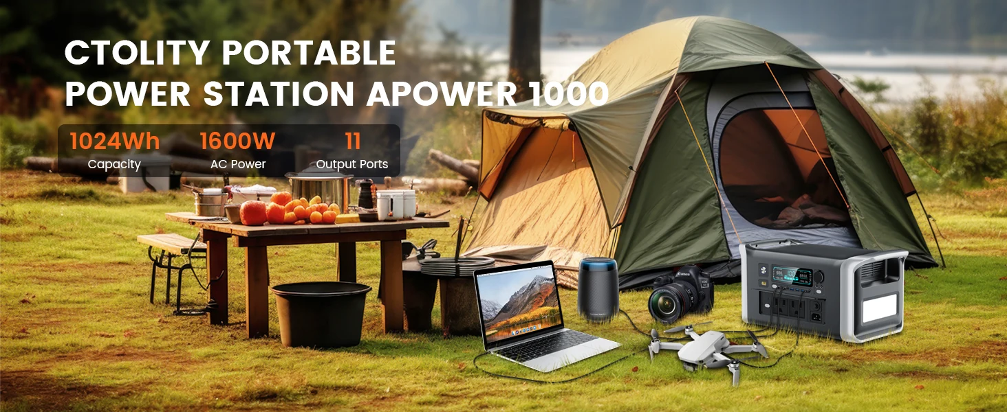 CTOLITY AP1000 1600W Solar Generator 1024Wh Backup LiFePo4 Battery & 200W Solar Panel RV Outdoors Camping Travel Blackout