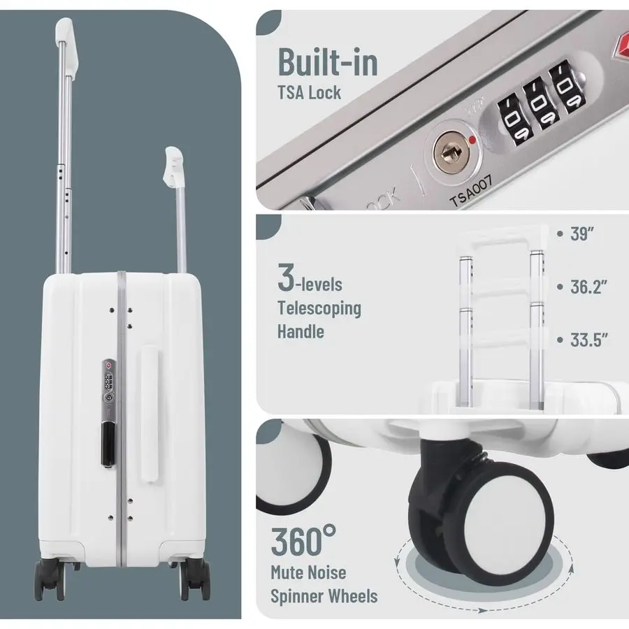 Inch Underseat Carry On Luggage with Wheels, TSA Approved Ride On Suitcase, Lightweight Kids Rolling Suitcase with Phone Holder,