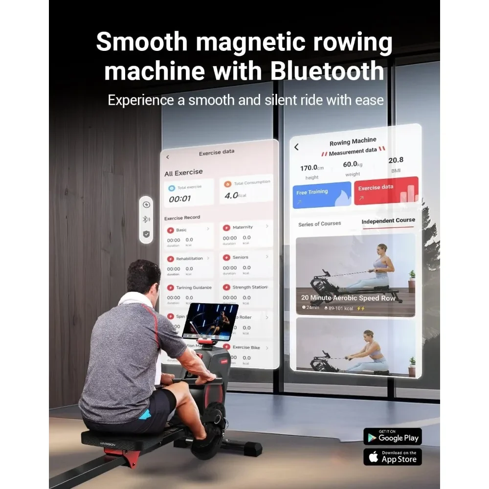 Magnetic Rowing Machine for Home with US Mute System Bluetooth Connectivity And App Support for Full-Body Home Workouts