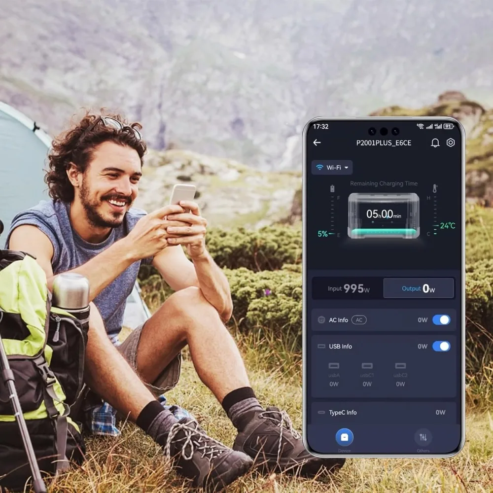 - You can use the mobile phone APP to connect to the power station via Bluetooth or WiFi to control the input and output of the power station at any time, monitor the remaining power of the device, etc.
