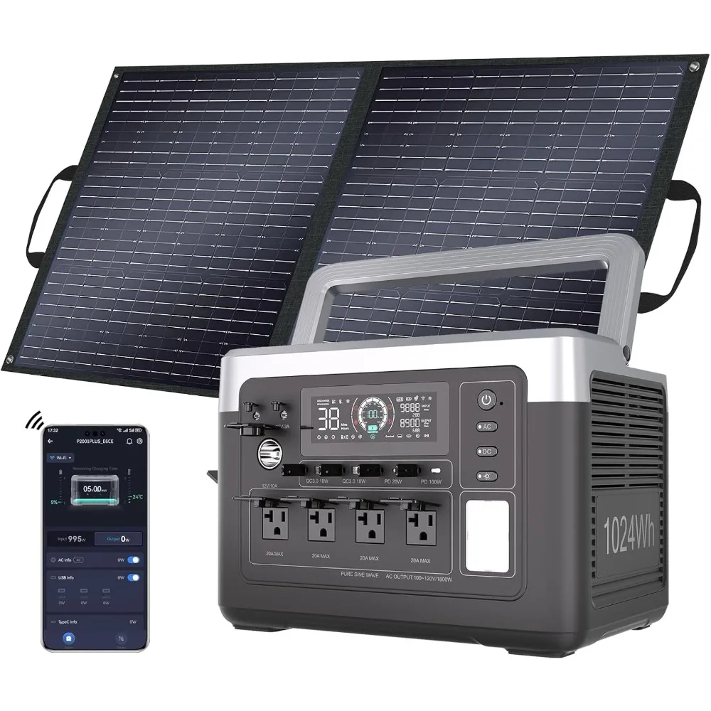 P1000 Plus 1800W/1024Wh Power Station with 100W Solar Panel, 1200W Fast Charging, Solar Generator with 4 AC Outlets (3600W Peak)