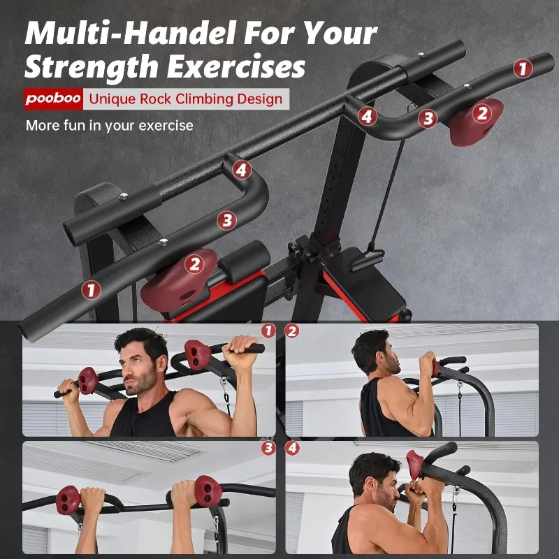 Diverse Multi-Function - With the workout equipment, You can easy to Pull Ups/Chin Ups/Dips/Vertical Knee Raises/Push Ups/Leg Pressing and extension. Build triceps, chest and shoulder muscles along with incredible upper body strength, whenever and wherever possible.
