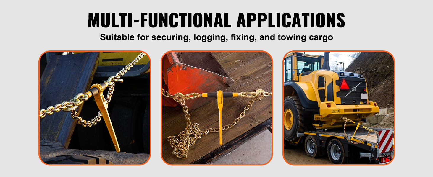 Wide Range of Uses: Ideal for fastening cargo on trucks or trailers, this chain binder set is suitable for various industrial environments, including factories, warehouses, garages, and docks; Whether you're handling bundling, logging, or towing tasks, it ensures reliable and efficient performance.